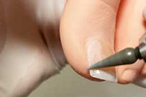 爪の厚みを整え補正具の密着を高めるために削ります。